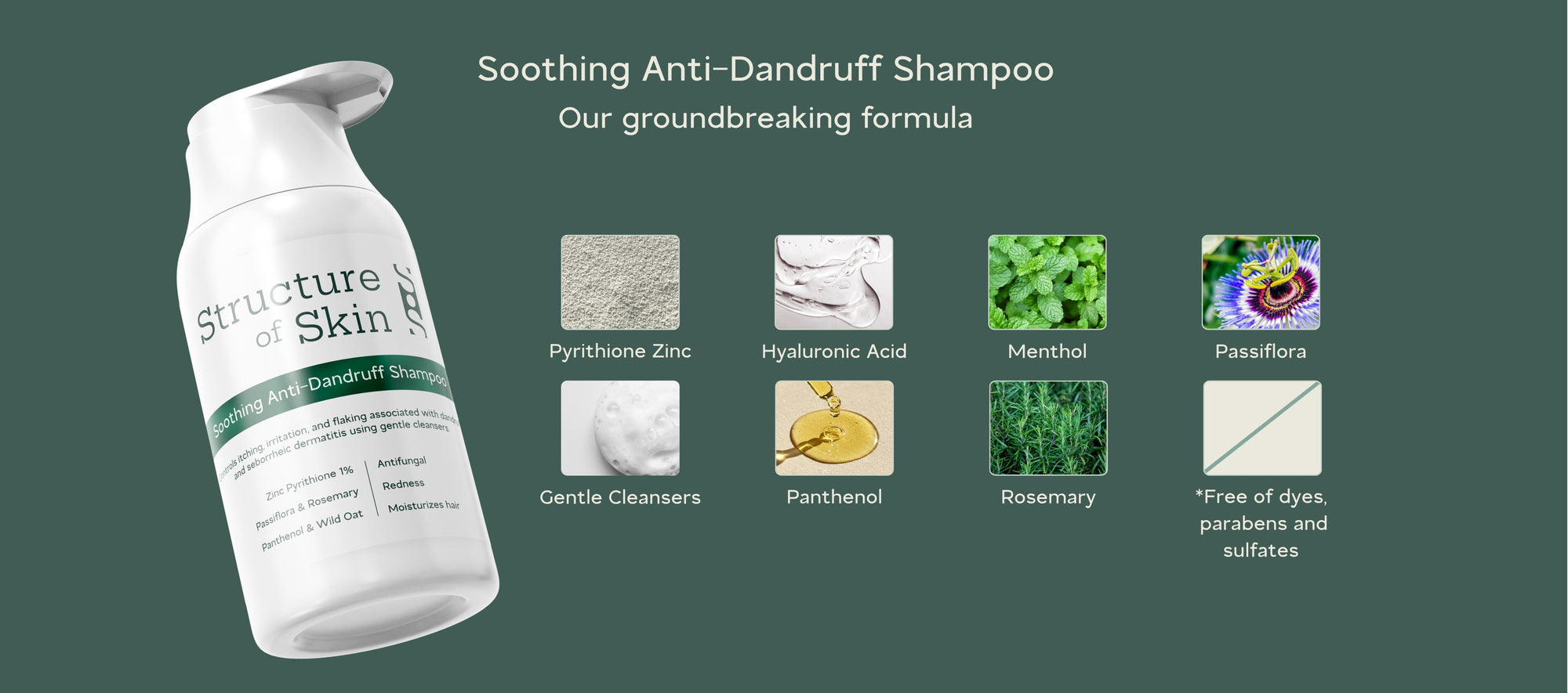 Pyrithione Zinc (PZ) | Antifungal active ingredient | 90% of dandruff cases are caused by Malassezia, a yeast fungus. PZ is easy on the scalp, hard on fungus. |